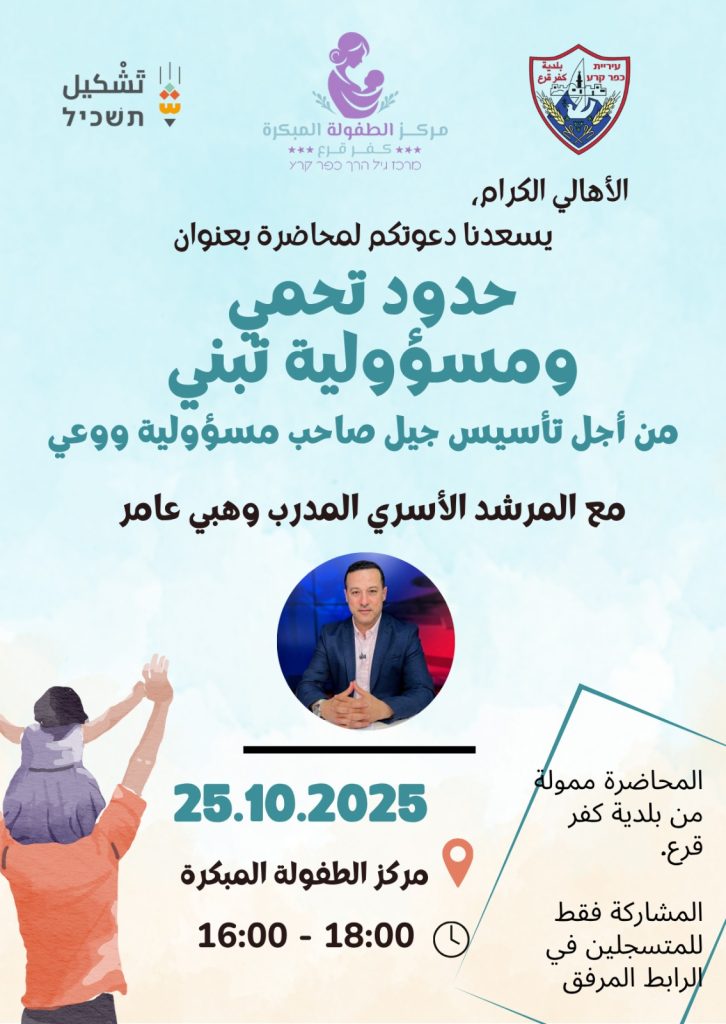 📢 دعوة هامة للأهالي بلدية كفر قرع ومركز الطفولة المبكرة يسعدهم دعوتكم للمشاركة في محاضرة قيمة بعنوان: ✨ حدود تحمي